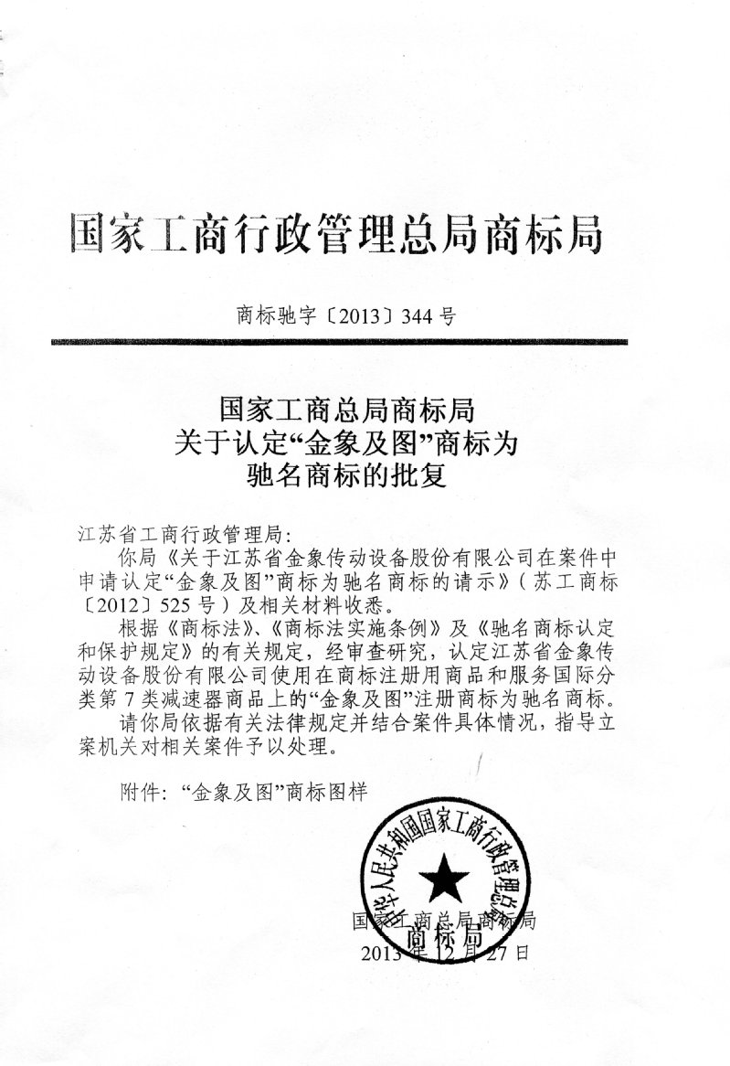 金象品牌獲得中國馳名商標、江蘇省著名商標、江蘇省名牌產品等稱號。公司先后獲得國家火炬計劃高新技術企業、江蘇省高新技術企業、江蘇省創新型企業等稱號。