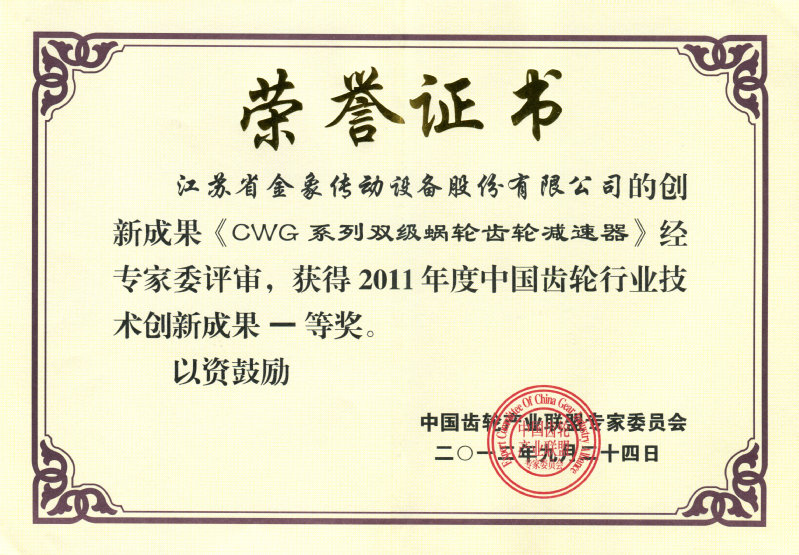 公司獲得多項行業或省級獎項:公司研發的“大型重載尼曼蝸輪蝸桿副關鍵技術及應用”獲批2021年度中國機械工業科技進步三等獎,“多分流立式磨機傳動裝置”獲批江蘇省專精特新產品,新型立式磨機減速器的研發與產業化獲得中國機械工業科學技術獎三等獎;新型單邊雙傳動減速機的研發與產業化獲2012年度江蘇機械工業科技進步一等獎;CWG系列雙級蝸輪齒輪減速器、立式磨機減速器被授予中國齒輪行業技術創新成果一等獎。