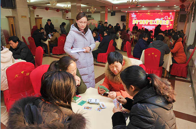 通過“迎新春”摜蛋比賽平臺的參與,有效增進(jìn)了職工之間的溝通與交流,營造了良好的企業(yè)文化氛圍。圖為淮海公司代表隊在2018年“迎新春”摜蛋比賽現(xiàn)場的鏡頭。