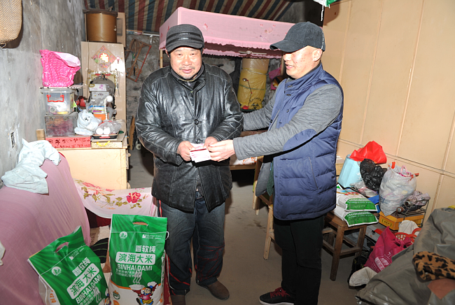 “你就捐助一戶吧,我們城西就嚴(yán)建明最困難,他患有哮喘病和慢性阻塞性肺氣腫,已病休多年,因體弱多病不能勞作。”臧成龍聽后深表感謝地說(shuō),“嚴(yán)建明的妻子已經(jīng)去世兩年了,家中還有一個(gè)上大學(xué)的女兒,他的家境真是讓人看了心酸。”