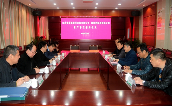 為深入貫徹落實(shí)集團(tuán)公司關(guān)于深化改革發(fā)展工作的相關(guān)精神要求,加快推進(jìn)農(nóng)場辦社會職能改革工作。3月16日,新洋農(nóng)場與射陽縣供電公司舉行資產(chǎn)移交簽約儀式。農(nóng)場場長潘元海、場長助理王煜明,射陽縣供電公司總經(jīng)理王愛軍、副總經(jīng)理祁振華,以及雙方相關(guān)單位、部門負(fù)責(zé)人出席簽約儀式。潘元海與王愛軍簽訂資產(chǎn)移交協(xié)議。