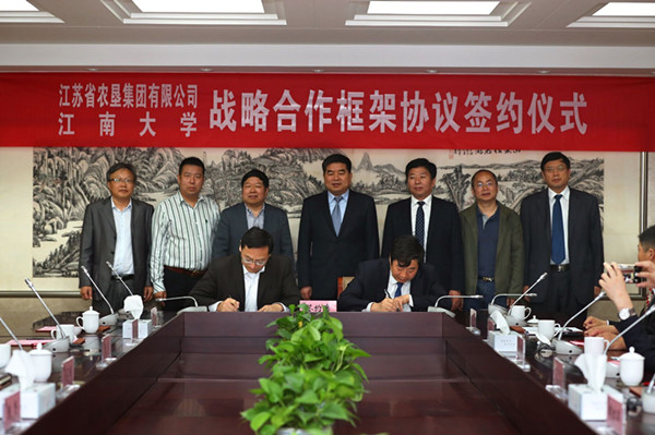 5月7日上午,江蘇省農墾集團有限公司與江南大學戰(zhàn)略合作簽約儀式在無錫舉行。江南大學校長陳堅、副校長吳正國,集團公司黨委書記、董事長魏紅軍,總經理胡兆輝,黨委委員蘇志富等出席簽約儀式。魏紅軍、陳堅分別代表雙方在簽約儀式上致辭。簽約前,江南大學黨委書記朱拓會見了魏紅軍一行。