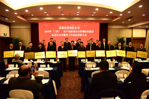 12月19日,蘇墾農(nóng)發(fā)股份公司在南京隆重召開2018年“三秋”、農(nóng)產(chǎn)品質(zhì)量安全控制體系建設(shè)、農(nóng)業(yè)社會化服務(wù)工作總結(jié)表彰大會。集團公司總經(jīng)理、蘇墾農(nóng)發(fā)股份公司董事長胡兆輝主持會議并講話。集團公司黨委委員、蘇墾農(nóng)發(fā)股份公司總裁蘇志富作報告,并宣讀表彰決定。會議表彰了在2018年“三秋”工作、農(nóng)產(chǎn)品質(zhì)量安全控制體系建設(shè)及農(nóng)業(yè)社會化服務(wù)工作中表現(xiàn)優(yōu)異、成績突出的先進集體和先進個人。