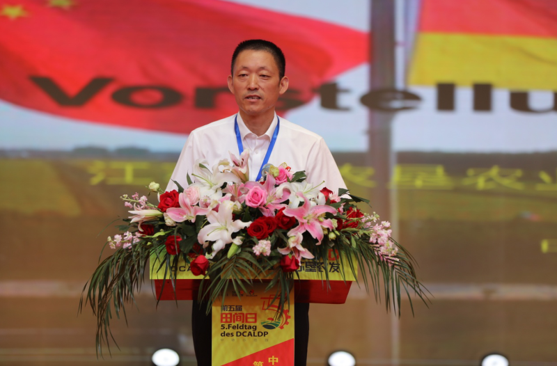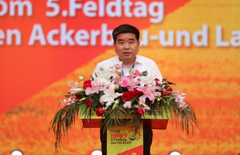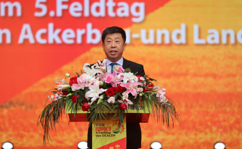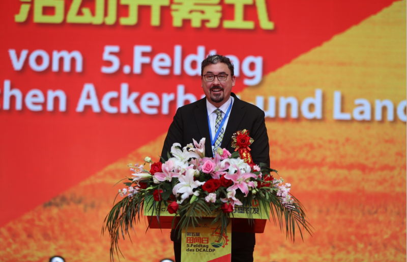 王宏前代表農(nóng)業(yè)農(nóng)村部對中德示范園第五屆“田間日”活動的成功舉辦表示熱烈祝賀!他說,中德農(nóng)業(yè)合作是中德雙邊合作的重要領(lǐng)域,在兩國領(lǐng)導(dǎo)人的共識引導(dǎo)下,2015年3月,作為中德農(nóng)業(yè)雙邊合作核心平臺的中德農(nóng)業(yè)中心啟動運行,中德農(nóng)業(yè)示范園是中德農(nóng)業(yè)中心框架下,兩國深化農(nóng)業(yè)領(lǐng)域合作的重要項目。4年以來,在雙方的共同努力下,示范園區(qū)在創(chuàng)新耕作模式、改善土壤活力、提高種植效益、強化科技培訓(xùn)等方面積累了寶貴的合作經(jīng)驗,取得了豐碩的合作成果,示范園對實踐與推廣環(huán)境友好、健康土壤的生態(tài)環(huán)境和管理技術(shù),推動農(nóng)業(yè)綠色發(fā)展方面作出了良好示范,可圈可點、可喜可賀。