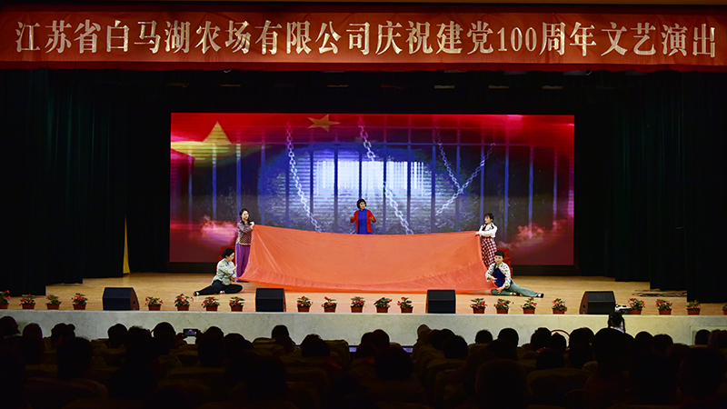 為慶祝中國共產(chǎn)黨成立100周年,回顧中國共產(chǎn)黨團(tuán)結(jié)帶領(lǐng)全國各族人民戰(zhàn)勝各種艱難險阻、譜寫中華民族自強(qiáng)不息的光輝歷程,感悟中國共產(chǎn)黨歷經(jīng)百年始終不渝的初心使命,共同抒發(fā)在黨的堅(jiān)強(qiáng)領(lǐng)導(dǎo)下奮進(jìn)新時代的壯志豪情,讓廣大干部職工在紅色氛圍中學(xué)習(xí)黨史、展示風(fēng)采,推進(jìn)黨史學(xué)習(xí)教育和“四史”宣傳教育不斷走深走實(shí),6月29日下午,白馬湖農(nóng)場公司在職工會堂成功舉辦了“百年禮贊、紅心向黨 ”慶祝中國共產(chǎn)黨成立100周年文藝演出。