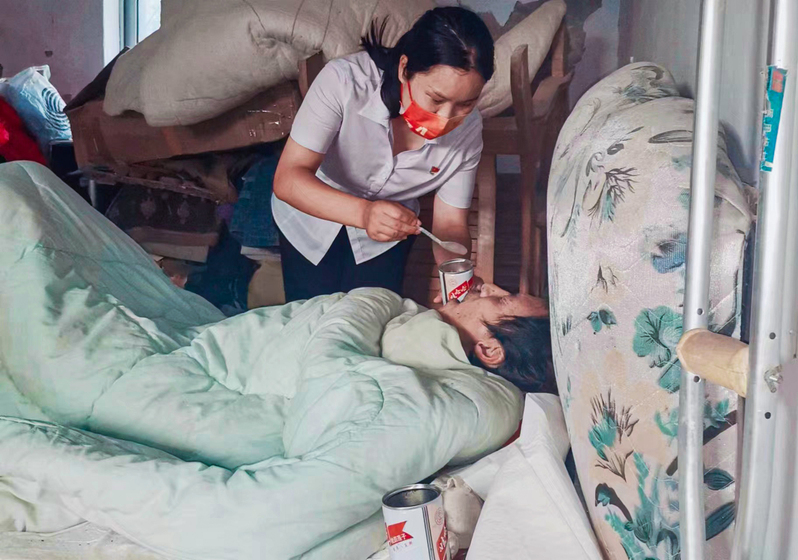 云臺農場張圩居委會所轄小糧地居民點,地理位置偏僻,是個只有5 戶人家的待撤并村莊2022年8月9日,在“四個百”活動日常走訪中,當居委會走訪到小糧地居民點曹子牛家時,發現昏暗的房間內陣陣異味撲鼻而來。獨居在此的民曹子牛,起夜從床上不慎跌落在地,造成意識模糊講不出話來,大小便失禁,生活無法自理,成了一名“失能人”。作為居委會的幫扶對象,曹子牛一直是村子里讓人頭疼的“老大難”。年輕時候的曹子牛常年游手好閑、酗酒成性,喝多了就家暴妻子孩子,2010年、2018年,他先后兩次因為酒駕摔傷,導致左腿粉碎性骨折、腰部受傷,妻子頭部嚴重受傷。厄運接踵而至,讓妻兒無法忍耐,先后離開了家由于平日的言行,加之親屬能力有限無人愿意照料他這給張圩居委會黨支部書記徐洪敏出了一道大難題,這燙手的山芋到手了就沒有丟掉的道理,徐書記沒有絲毫的猶豫,她立即成立了以她和居委會黨支部委員段萬江同志、小糧地轄區網格單元長顧林國同志為成員的專項幫扶小組,第一時間為曹子牛送去了米、面、水、雞蛋、八寶粥、隔尿墊、尿不濕等食物生活必需品,并看守照料曹子牛。照料這樣的失能人難度可想而知,而這位90女書記愿意帶著大家干這種又臟又累伺候人的活,更是難以想象!面對滿屋的異味,她連眉也沒皺一下,不嫌臟、不怕累,帶領幫扶小組上前給曹子牛喂水喂藥、喂飯,處理他的大小便,換洗床鋪,打掃房間真正將群眾視為自己的親人去照料,去愛護照料曹子牛生活的同時,她也沒有停止為曹子牛爭取援助的腳步。她積極聯合轄區派出所和有關部門,想方設法聯系他的親屬,苦口婆心的勸說,幫助協調矛盾糾紛,積極申請民政救助,聯系海州區殘聯上門幫助他評殘,為曹子牛申請重殘補助讓曹子牛真真切切地感受到黨的關懷。