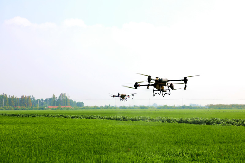 近年來,蘇墾農發三河分公司高度重視農機裝備智能化發展與管理,目前已經實現無人機全程噴藥、施肥。當前正值水稻抽穗期,三河分公司精心組織,認真抓好水稻后期以稻曲病、稻瘟病、稻縱卷葉螟、稻飛虱和葉面噴肥等為主的綜合防治工作,為秋糧豐產高產提供保障。