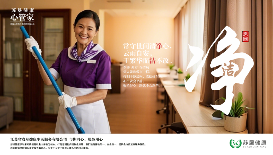 蘇墾健康制定嚴(yán)謹(jǐn)?shù)谋嵙鞒膛c標(biāo)準(zhǔn),從公共區(qū)域的日常清掃、垃圾清運(yùn),到各專間的深度清潔、消毒除臭,每個(gè)環(huán)節(jié)都嚴(yán)格把控。配備先進(jìn)清潔設(shè)備與環(huán)保清潔用品,確保服務(wù)區(qū)域始終整潔、明亮,為業(yè)主帶來(lái)舒適的視覺(jué)與體感體驗(yàn)。