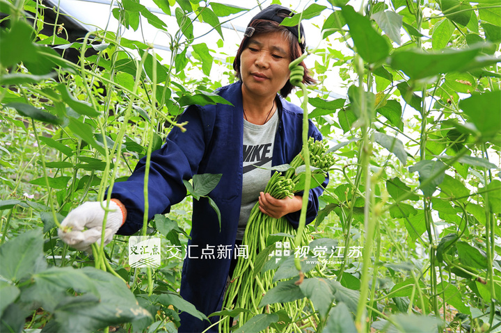 9月17日,連云港市海州區(qū)的江蘇農(nóng)墾崗埠農(nóng)場,種植戶在溫室大棚里采收成熟的豇豆,準(zhǔn)備供應(yīng)市場銷售。徐衛(wèi) 攝 視覺江蘇網(wǎng)供圖