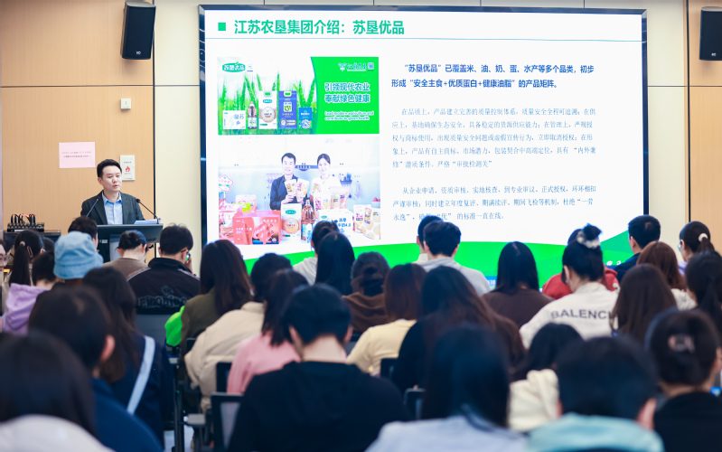 宣講會(huì)現(xiàn)場(chǎng),工作人員還特意帶來(lái)多款江蘇農(nóng)墾的產(chǎn)品與同學(xué)們分享。蘇墾乳業(yè)的簡(jiǎn)蘇A2β原生高鈣純牛奶、蘇墾米業(yè)的蘇米滋鍋巴,以及新曹農(nóng)場(chǎng)即將上市的玉谷香鹵蛋,都收獲一致好評(píng)。這些實(shí)實(shí)在在的產(chǎn)品,讓同學(xué)們直觀感受到江蘇農(nóng)墾對(duì)質(zhì)量與安全的追求。