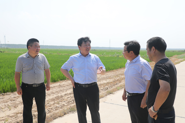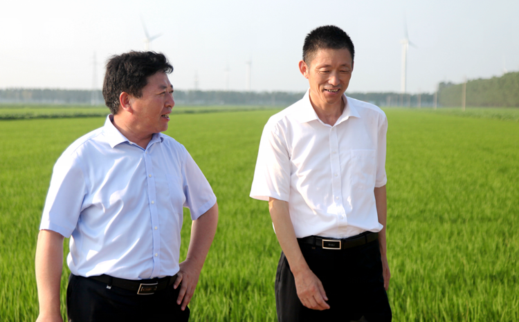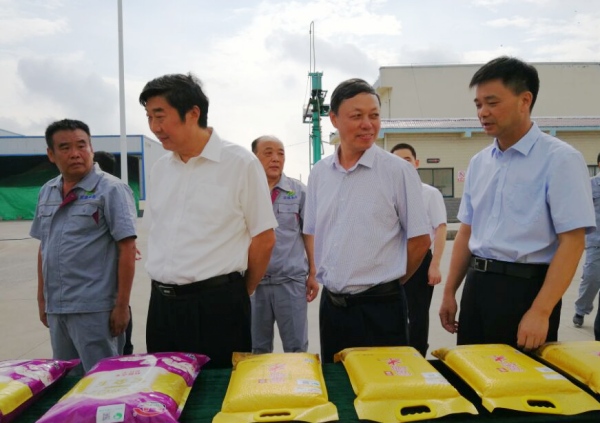 8月5日,集團公司黨委委員、蘇墾農(nóng)發(fā)股份公司總裁蘇志富一行到蘇墾農(nóng)發(fā)股份公司黃海分公司檢查指導(dǎo)工作。黃海分公司總經(jīng)理賀在銳、副總經(jīng)理沈進松陪同介紹情況。  蘇志富冒著酷暑深入到黃海分公司水稻生產(chǎn)一