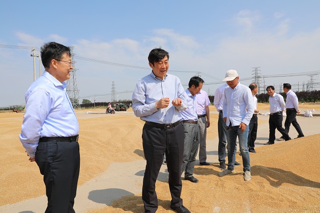 6月14日下午,集團公司總經(jīng)理、蘇墾農(nóng)發(fā)董事長胡兆輝一行到濱淮檢查指導(dǎo)三夏工作。濱淮領(lǐng)導(dǎo)班子李德利、傅龍光、李文忠、馬傳武、鄧權(quán)才、劉雄飛等陪同檢查。  在濱淮分公司二生產(chǎn)區(qū)五大隊場頭,李德利匯報