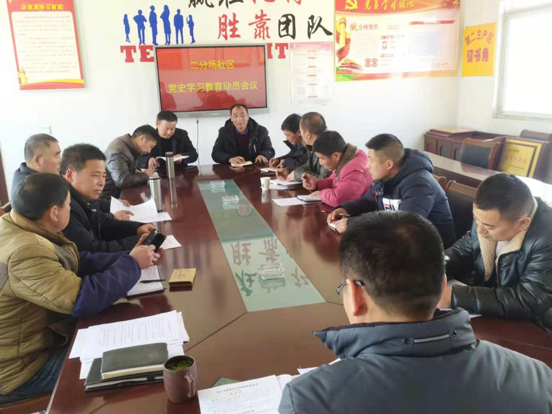 322淮海農場公司二分場社區召開黨史學習教育動員部署會,深入學習貫徹習近平總書記在黨史學習教育動員大會上的重要講話精神,認真落實農場公司黨委決策部署,對社區開展黨史學習教育進行安排部署社區總支副書記傳達了農場公司黨史學習教育動員部署會議精神并作動員講話,社區干事詳細解讀農場公司黨委黨史學習教育實施方案。