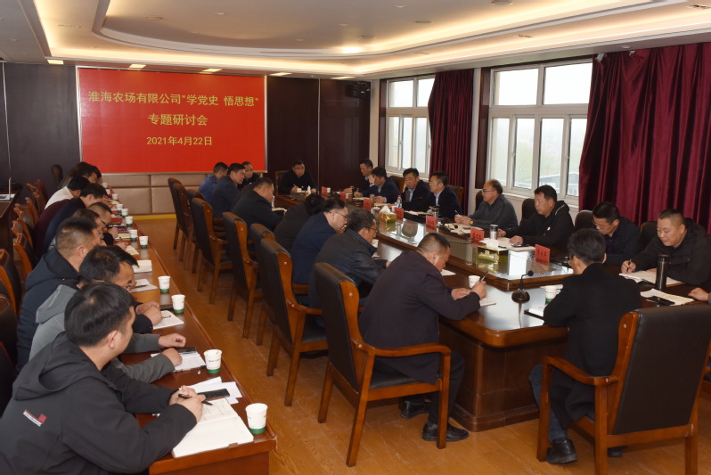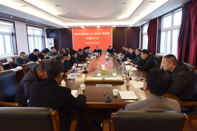 4月22日下午,淮海農場有限公司黨委舉行“學黨史悟思想”專題研討會,農場公司黨委書記單祥忠主持會議并講話,淮海領導班子成員、財務總監,各黨總支、直屬支部書記,農場機關、二三產單位和駐場單位負責人參加會議。