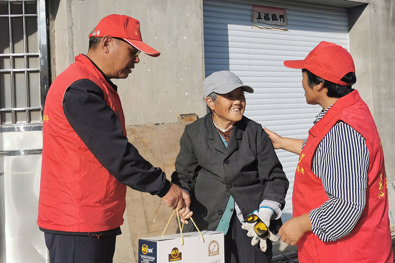 活動前,分隊(duì)長馬建春向志愿者分隊(duì)成員闡述了此次活動的重要意義,并將志愿者們分為三個(gè)小組,帶著農(nóng)場公司黨委領(lǐng)導(dǎo)的囑托,分別探望了場域內(nèi)部分80歲以上、子女不在身邊的老人,為老人們送上慰問和祝福。