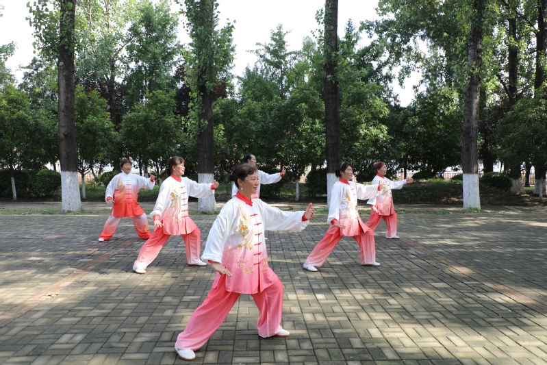 每日清晨,走進(jìn)東辛公園,景色優(yōu)美、河水蕩漾、綠樹成蔭、百鳥爭(zhēng)鳴,荷塘內(nèi)夏日荷花婀娜多姿、競(jìng)相綻放,藍(lán)天白云和隨風(fēng)搖曳的柳枝倒映在水面上,宛若一幅動(dòng)態(tài)的風(fēng)景畫,給東辛公園增添了幾分獨(dú)有的美麗。穿過(guò)蜿蜒曲折的步道,在東辛公園西北角,這里參天大樹四面環(huán)繞,空氣清新沁人心脾,是居民群眾免費(fèi)的室外“健身房”。只見6名太極愛好者身著粉色太極拳服,音箱內(nèi)播放著舒緩的音樂(lè),他們動(dòng)作整齊劃一,身形靈活揮灑自如,將太極拳含蓄內(nèi)斂、連綿不斷、急緩相間、行云流水的風(fēng)格展現(xiàn)得淋漓盡致,吸引了許多公園晨練者駐足觀看。其中一位愛好者楊老師說(shuō):“平日里大家工作都特別忙,現(xiàn)在盛夏時(shí)節(jié)天亮的早,公園內(nèi)風(fēng)景優(yōu)美,我們太極拳愛好者每天6點(diǎn)半左右就開始集合鍛煉,堅(jiān)持打太極對(duì)男女老少身體都特別有益,尤其對(duì)肩頸舒緩非常有幫助,越來(lái)越多的人加入到太極拳隊(duì)伍中來(lái)。”在練習(xí)隊(duì)伍中,出現(xiàn)了不少年輕人的身影,充分展示了農(nóng)場(chǎng)居民健康積極、樂(lè)觀向上的精神風(fēng)貌。傍晚時(shí)分,結(jié)束了一天忙碌的工作和學(xué)習(xí),東辛文化廣場(chǎng)燈光籃球場(chǎng)上人頭攢動(dòng),這里有暑期放假的學(xué)生,也有居民籃球愛好者,還有單位職工相約三五好友一道來(lái)到這里揮灑汗水,切磋球技。傳球、控球、擋拆、
