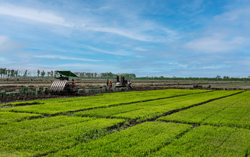 隨著夏糧顆粒歸倉,弶港農場抓住當前氣溫適宜有利條件,快速轉入夏插階段,確保水稻秧苗插在適齡期。目前,全場近4萬畝水稻插秧工作已經全面展開。秧苗池里,工人們起秧、傳遞、裝車,井井有條,忙而不亂。農田里,一臺臺高速插秧機在秧田中來回穿梭,伴隨著轟隆隆的機器聲,農機手駕駛著插秧機正在地里來回穿梭,秧苗被整齊地插入水田中,為廣闊的稻田換上了綠色的新裝。