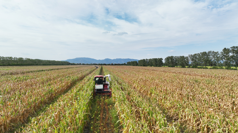 2023年10月10日,蘇墾農發崗埠分公司的1.5萬畝玉米大豆帶狀復合種植進入收獲季,職工們搶抓晴好天氣,做好收割、晾曬、烘干作業,確保糧食安全入庫。
