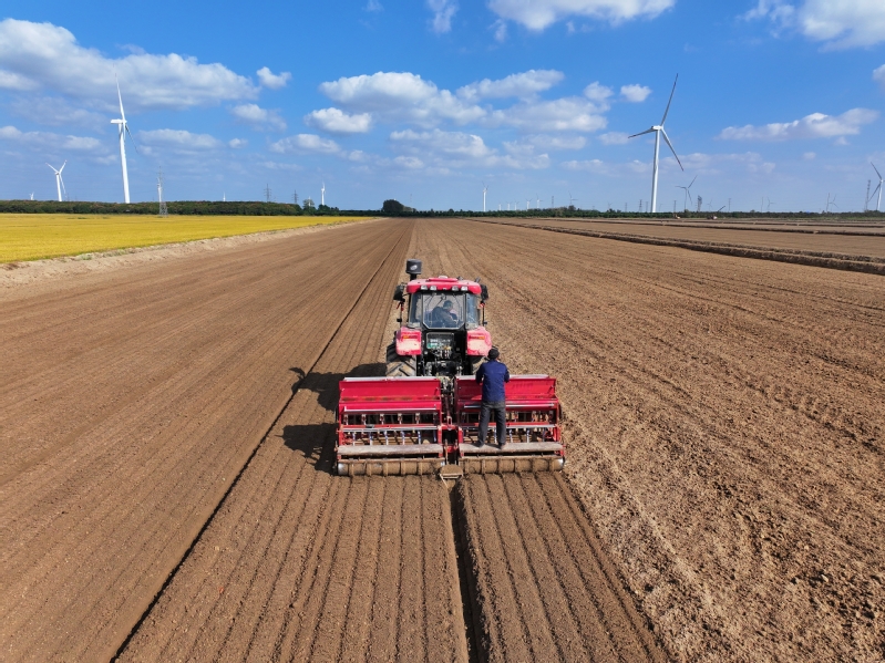 10月13日上午,蘇墾農發新洋分公司西瓜地騰茬后新中生產區11大隊河北13號田率先開啟播種小麥工作。機器轟鳴,正反旋播種機在田間來回穿梭,田間一派繁忙景象。蘇墾農發新洋分公司切實抓住秋播這一關鍵環節,堅持適墑播種,嚴格質量和管理,全面提高耕地、重耙、旋耕、施肥、播種各項作業質量,確保原墑出苗。在正式播種前提前反復調試播種機械狀態,做到合格一臺,作業一臺。播種時保持均勻速度,控制播速,確保播種深度控制在2至3cm左右、溝壁播種質量高、版面平整。在播種現場,農水中心負責人嚴格監督播種機作業質量;機器過后,生產區、大隊相關負責同志及時跟上,檢查播深;農業中心組織技術人員靠前服務,對秋種作業進行技術指導。大家全力以赴,搶抓農時,打好明年夏糧產量、質效提升主動仗。當前,蘇墾農發新洋分公司秋播秋種已經啟動,10月13日下午在11大隊河北13號田小麥播種完成后,10大隊河北11號田隨后也啟動小麥播種、11大隊河北15號田啟動油菜播種作業,各項工作正在有序推進,計劃11月8日前完成全部秋播任務。