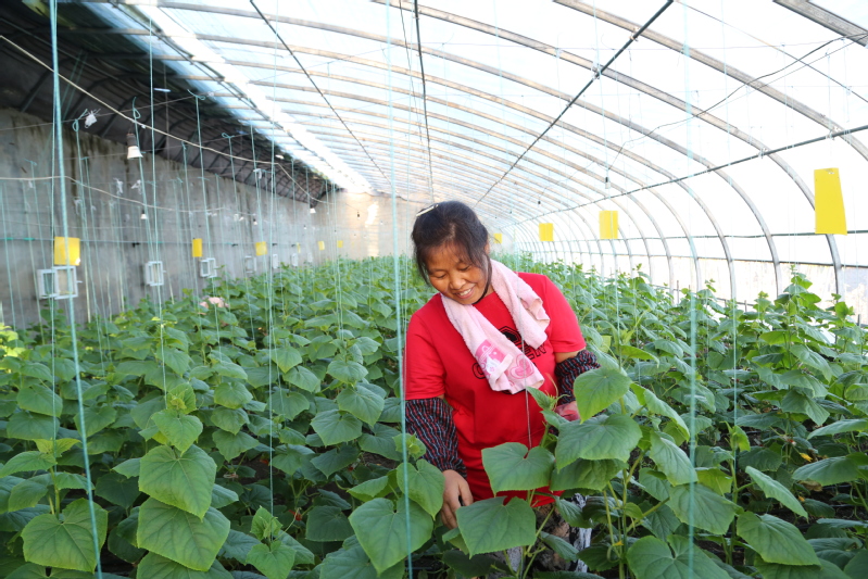 走進崗埠富民農業科技園32號溫室大棚,滿眼盡是綠意,一排排整齊的秧苗長勢旺盛,如青玉般細嫩的小黃瓜在翠綠的葉片襯托下,身著綠裝,格外誘人。連日來,園區加強精細化管理,從消毒、栽種、水肥運籌等流程上嚴格作業,確保水果黃瓜果型優良、綠色生態。圖為工人正在進行“蘸花”作業。